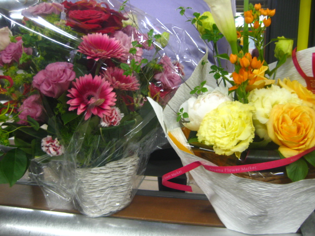 しかも、さらに、、「お祝いのお花、お好きなのお持ちください」と言われ、欲張って2個ももらった。夢のよう~♪