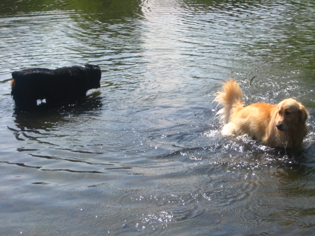 今日は珍しく、池で犬が水遊び。まだ5月だっていうのに、今日みたいに暑か日は気持ちええやろね~。