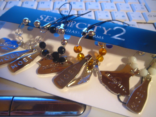 きっと靴のは絶対にキャリー、ドレスのがシャーロット、多分バックのがサマンサで、ハートはミランダを象徴しているのかしらん。これは私にとって、むしろシャンパンのほうがおまけ。