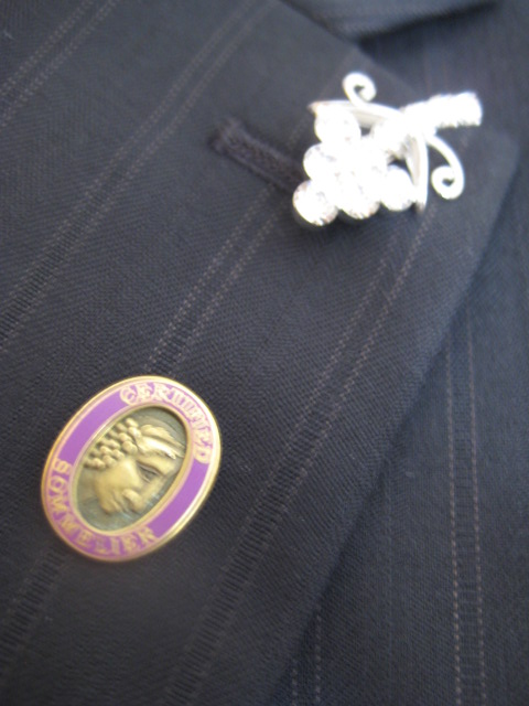 ワインも、フレンチレストランながら、カリフォルニア産が7割。ソムリエさんは、アメリカのオーベルジュで3年働き、米国の資格を取った千葉和外氏。写真下、こんなバッジ、わたすは初めてみました~