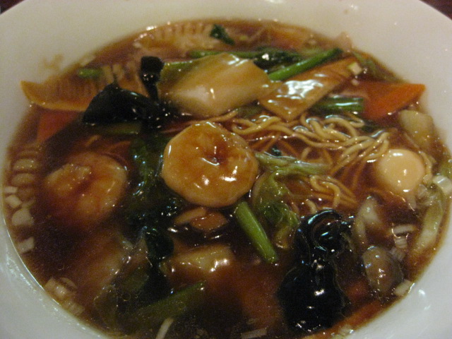 五目あんかけスープ麺(890円)は、実は、会員だと、、ある時、300円なの☆ 海老、帆立、烏賊、海鮮に野菜たっぷりで、むっちゃ美味しかったです~。日本橋もたまにしかにこんけど、また来たいです♪