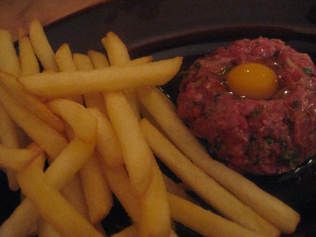 もう一品、「名物和牛のタルタルステーキとフレンチフライ」(900円)