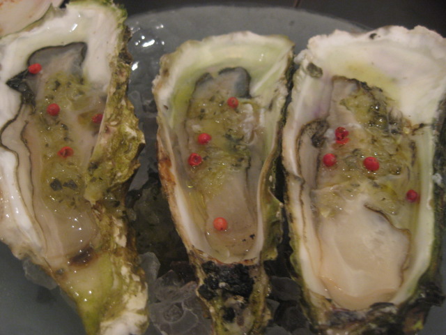 解禁になったばかりの牡蠣は、生とパン粉のグリルで。(1P250円)