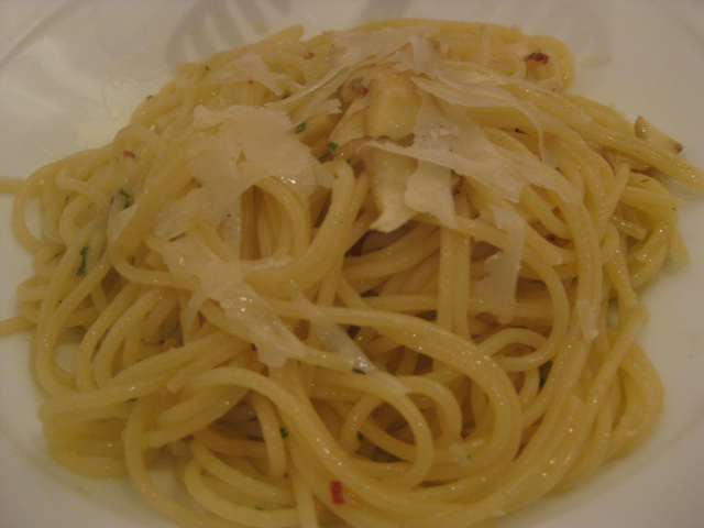 黒板メニューから、カナダ産の松茸のぺペロンチーノ(1,600円)と、ガーリックトースト(1P100円)