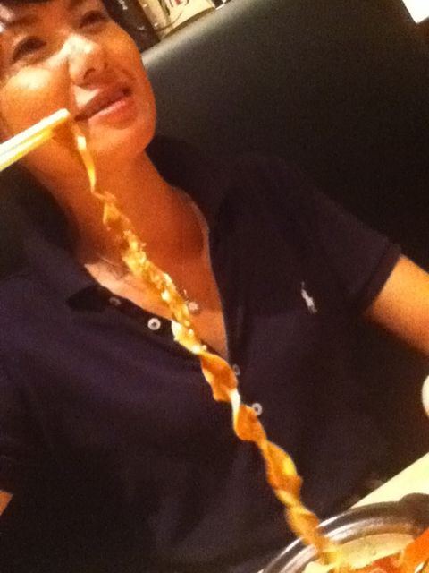 〆はもつ鍋。はて、今気づいたが、なんでこんなに異常に長いんだろう・・・?