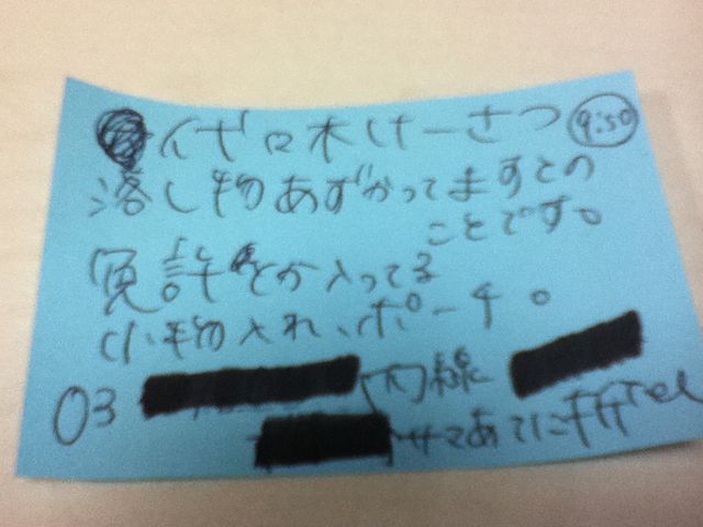 「タッコさん、今さっき代々木警察署から電話があって、すぐ折り返し電話欲しいそうです」