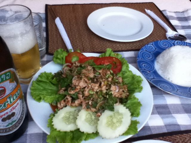 ラーブは、タイのプリッツの味にもなっているけど、あまり見かけず、初!スパイシーで、ラオビールにあいます。