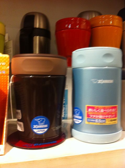 またエンポリへ。ランチジャーというとドカタの人が持っていくイメージがあったが、今やおしゃれなものもたくさん!左のものが色やデザイン的に気に入ったのだが、スープ用で350mしか入らないので、お弁当用には足りず適さない。