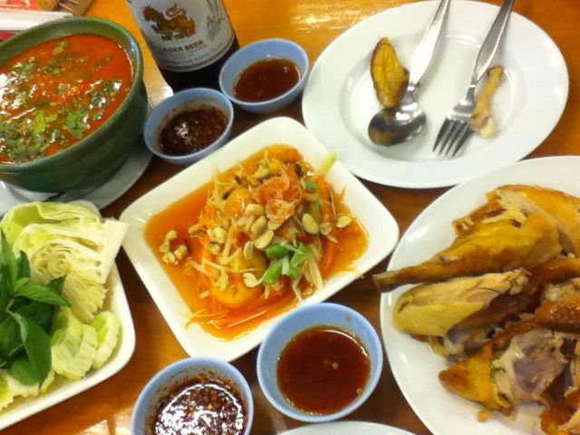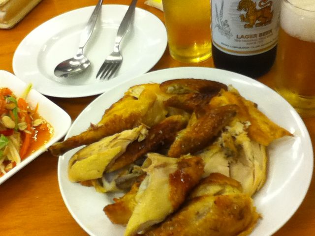 姉に「タイで食べたいものって何?」と聞いたら、「ガイヤーン」しか出てこなかったが、ワットポーの近くに、ガイヤーン専門店があると「歩バン」に出てたので、そこを探す。