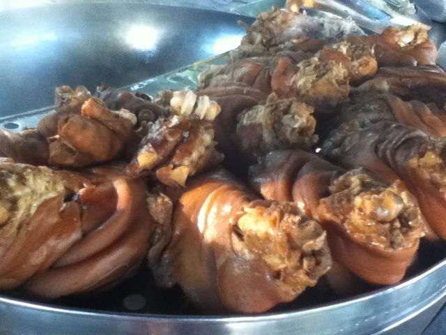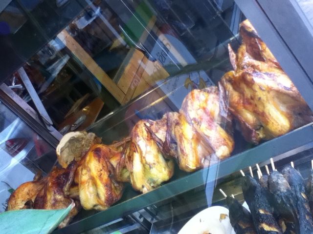 TUKTUKに乗ると宝石店のセールがあるよと連れてかれそうになりつつも阻止して「ガイヤーン・ボラーン」へ到着!店先のオーブンには美味しそうなそれが、ズラ~リ!!