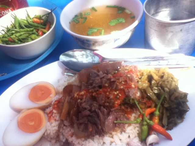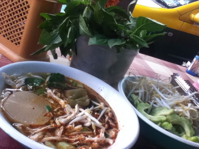 もう20回は通ってるけど、名前も知らない(読めない)トンローの食堂。後日、「バミー コン セリー」という名前と判明!