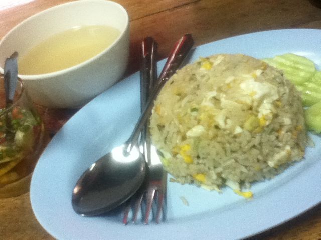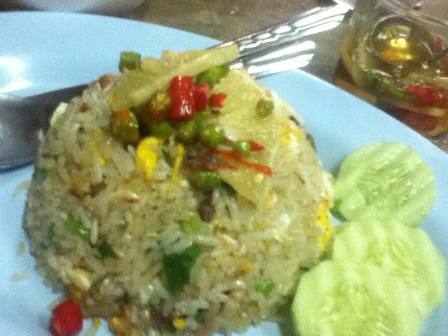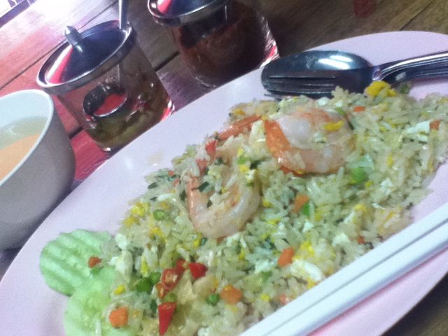 一通り食べて、ハマってしまったのが カオ パッ タレー (シーフード炒飯・40B)!