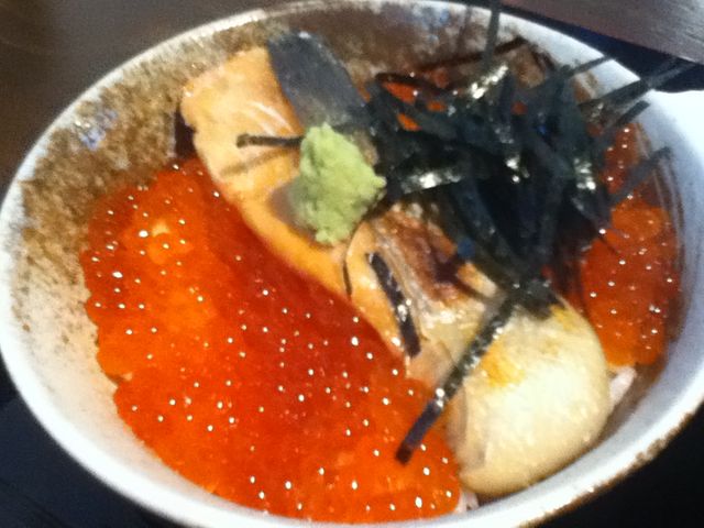 Nさんは鮭いくらの親子丼!海のルビー!美しい!鮭は塩じゃけではなく、こだわりの生鮭!!