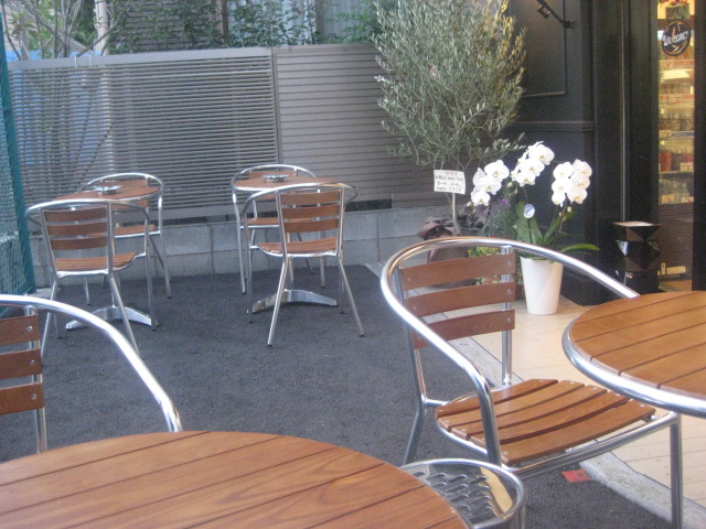 立ち飲みスペースやテーブル席もあったが、ウッドデッキのテラス席!夜風が気持ちいい~!